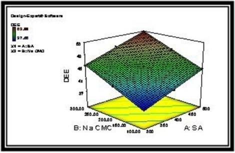 Drug Entrapment Efficiency =+45.17+3.55 * SA+4.23 * NaCMC