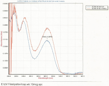 A detailed review of the literature regarding the existing methods revealed that there is a need for the development of the spectrophotometric method and chromatographic method, which is simple with less time tedious mobile phase or dilution medium. In the present study modest, novel, sensitive, reliable and accurate methods have been established for the estimation of capecitabine in bulk and in tablet dosage forms. Both the methods have a simple medium like water or feasible mobile phase mixture, which can be used for analysis of capecitabine with better separation of analytes. An attempt was made in the present methods to achieve an accurate, reliable and reproducible result with minimum Relative Standard Deviation (RSD) values than all other existing methods, which was successfully accomplished.