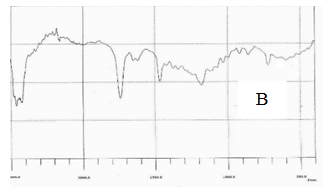 The infra-red spectra (fig. 9) of RH pointed out the characteristic peak at 2510 cm−1(attributed to the N+and–H bond in protonated tertiary amine group), a prominent IR absorption band at 1620 cm−1 due to stretching vibration of C=N of amine group, and another characteristic peak of N=O at 1421.14 cm−1.