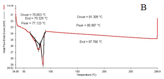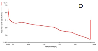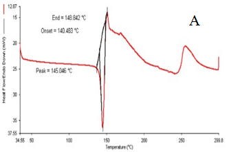 The DSC measurements were performed using 3 mg samples placed in sealed aluminum pans, before heating under nitrogen flow (20 ml/min) at heating rate 10˚C/min, over the temperature range of 35˚C to 300 ˚C. An empty aluminum pan was used as a reference. DSC of the pure ranitidine hydrochloride, lipids (hydrogenated castor oil or glyceryl behenate), and floating micro particulates were compared with each other.
