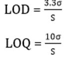 Where, σ = the standard deviation of the response and S = slope of the calibration curve. The LOD and LOQ were separately determined based on the calibration curve.