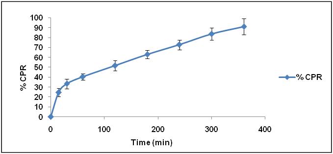 The in vitro diffusion study of a batch D10 of rizatriptan benzoate loaded microspheres was carried out using the sheep nasal mucosa. The result of in vitro diffusion study is represented in fig. 3.