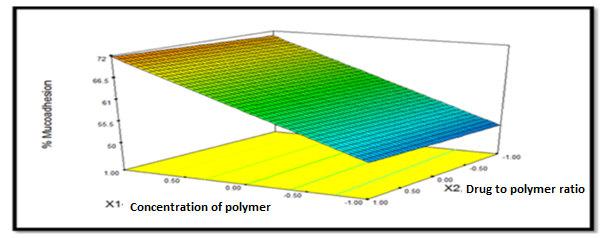 Fig. 6: 3D-surface graph for % mucoadhesion