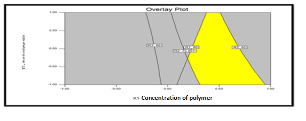 This curve indicates that the concentration of a polymer in the range of 2.25% to 2.75% and drug to polymer ratio in the range of 1:2 to 1:6, low level of volume of liquid paraffin and magnesium stearate, resulted into the fulfilment of all set criteria.