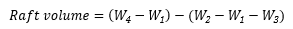 Raft-forming tablet was placed inside a pre-weighed (W1 g) glass beaker containing 150 ml HCl buffer just like the above procedure but without any wire. The beaker was kept undisturbed for 30 min for completion of raft formation. When the raft formation was completed, the position up to which the top of each raft has reached was marked from outside. After raft development, the total weight of the beaker was measured again (W2 g). Then the raft was carefully separated and kept in a plastic pre-tared weighing boat. The raft was allowed to stand for 1 min and any trace of subnatant liquid was carefully taken out. The weight of the raft was measured accurately (W3 g). Any trace of water was wiped off from the beaker and it was refilled with water up to the previous mark and weighed (W4 g) [24]. The raft volume was calculated from the following formula by assuming that the density of subnatant liquid is similar to water-