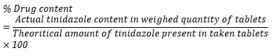 | Drug (tinidazole) or solid dispersed tinidazole equivalent to | 100 | 100 | 100 | 100 | 100 | 100 |