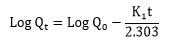 When data was plotted as log cumulative % drug remaining Vs time yields a straight line indicating that the release follows first order kinetics. The constant K can be obtained multiplying slope values [26].