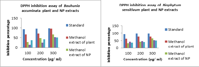 Fig. 1: DPPH assay of Bauhinia acuminata and Biophytumsensitivum extract and NP extracts