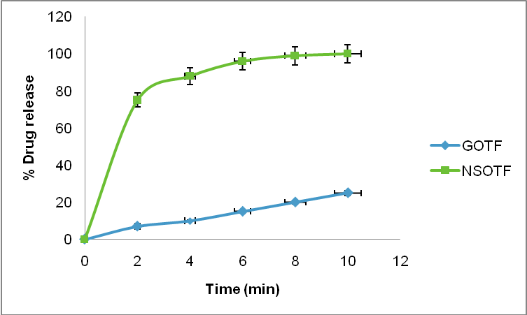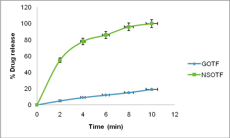 Fig. 5: In vitro dissolution profile of GOTF and NSOTF in pH 1.2 HCl buffer