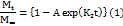 where A and k2 are constants calculated from the slopes and intercepts of the plot of log(1-Mt/M∞) versus time t at times later than those corresponding to Mt/M∞=0.6. The equation Mt/M∞= ktn adequately describing a major portion of the swelling behaviour fails to give an accurate analysis above Mt/M∞=0.6. To obtain a better model after 60%, we have used Berens–Hopfenberg equation.