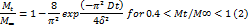 Where D is the water diffusion coefficient, δ the half thickness of the implant, Mt the amount of water uptake at the time, t and M∞ is the water uptake at equilibrium [13]. Diffusion coefficients of insulin through the implants were calculated with Eqs. 2 and 3: