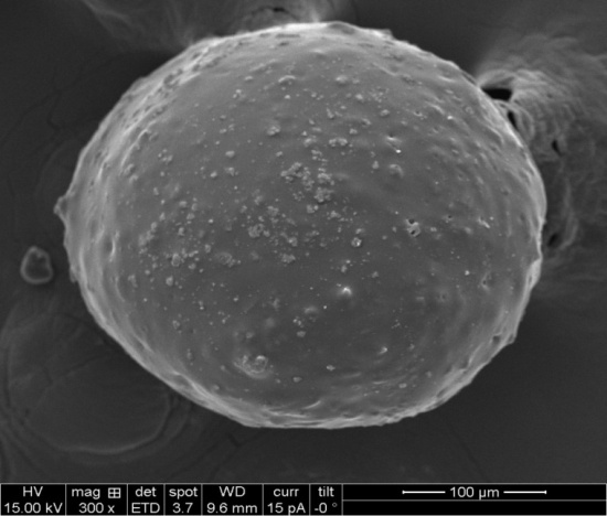 The surface morphology of prepared microspheres was observed under scanning electron microscope (JEOL, JSM-T, Japan). Dry microspheres were placed on an electron microscope brass stub and coated with gold to a thickness of about 200 A° using a sputter coater in an ion sputter. Pictures of the microspheres were taken by randomly scanning the stub with the help of SEM analyzer.
