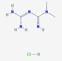 Metformin (MET) hydrochloride is chemically named as (3-(diamino methylidene)-1, 1-dimethylguanidine hydrochloride. It has a molecular formula of C4H12ClN5 and the molecular weight is 165.62 g/mol. MET is an oral anti-hyperglycemic agent (Type 2 diabetes) belongs to a class of biguanides and useful for treating non-insulin dependent diabetes mellitus. MET decreases blood glucose levels by decreasing hepatic glucose production, decreasing intestinal absorption of glucose, and improving insulin sensitivity by increasing peripheral glucose uptake and utilization. These effects are mediated by the initial activation by MET of AMP-activated protein kinase, a liver enzyme that plays an important role in insulin signaling, whole body energy balance, and the metabolism of glucose and fats [1-5].