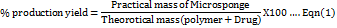 The production yield of the microsponges was determined by calculating accurately the initial weight of the raw materials and the final weight of the microsponges obtained.