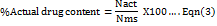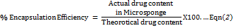 Where Nact is the actual oxiconazole nitrate content in weighed quantity of microsponges, Nms is the weighed quantity of powder of microsponges [8-10].