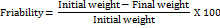 Variability of the tablets was estimated by friabilator (Electrolab EF-2, India), expressed in percentage. A total of 10 tablets chosen arbitrarily were weighed and taken into the apparatus and operated for 4 min at 25 rpm. After a specific period, the tablets were reweighed. The friability was then determined by the below formula