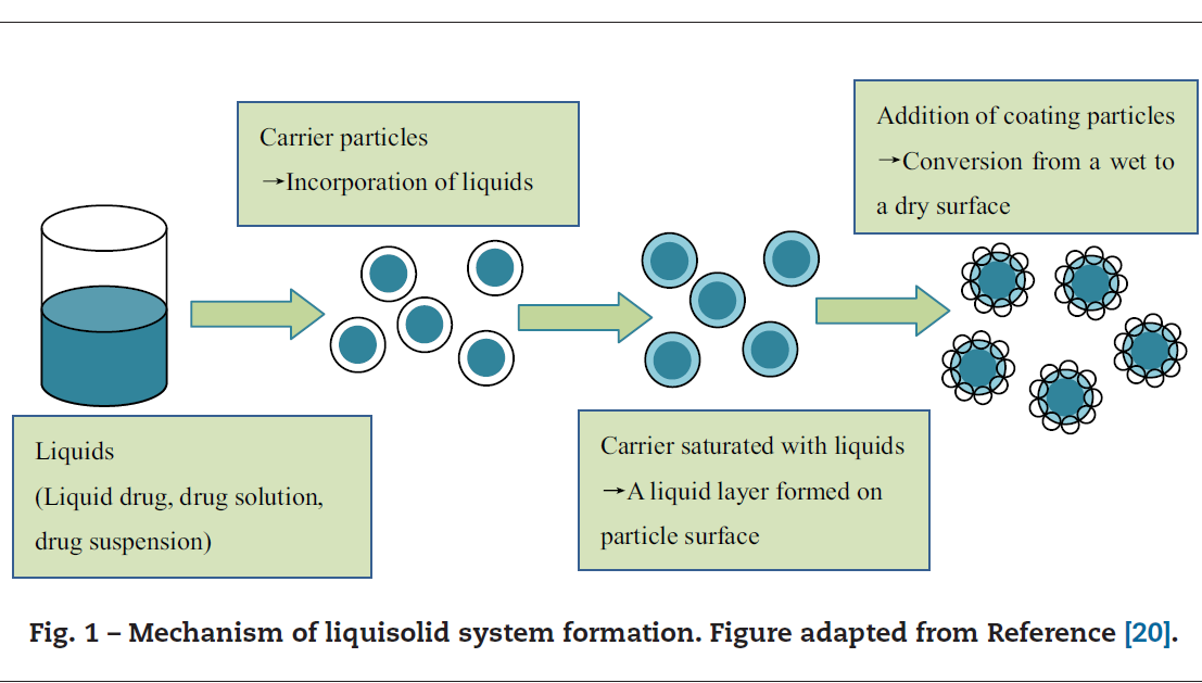 The liquisolid technique is a novel and most promising technique for improving the dissolution rate of poorly water-soluble drugs. In this technique with the use of carrier and coating materials the liquid form of drug converted into dry looking, non-adherent, free flowing, and directly compressible powder. In liquisolid system, the liquid portion is a drug suspension, liquid drug, or drug solution made in suitable non-volatile liquid vehicles [6, 7].