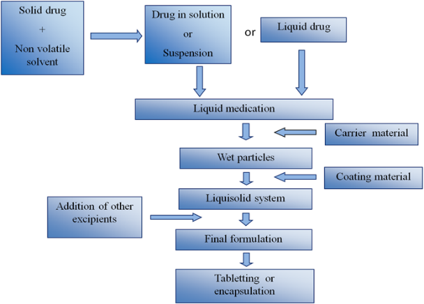 Fig. 7: General preparation procedure of liquisolid formulation [2]
