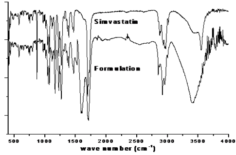 The infrared spectra of simvastatin and formulation were recorded on FTIR (JASCO-FTIR 5300). The samples were prepared on KBr press (Spectra Lab, Mumbai, India).