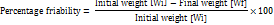 Friability of the prepared tablets was determined by friability test apparatus (HICON New Delhi) by using the equation: