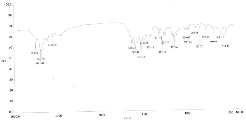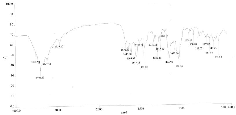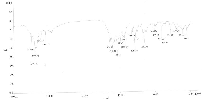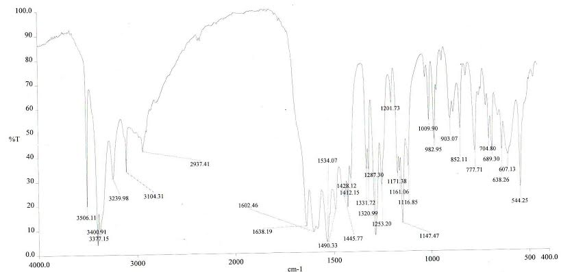 FTIR spectrum of famotidine was recorded using Perkin Elmer Instrument spectrum one (model) FTIR spectrometer and compared with reference spectra of pure drug, famotidine [10, 15].