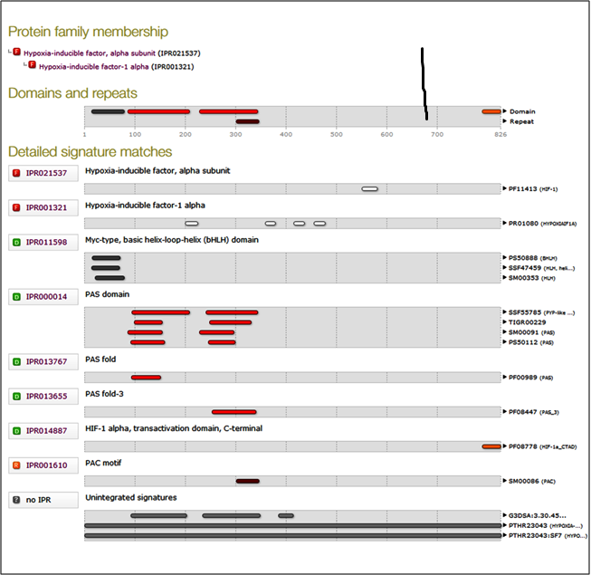 Fig. 1: Interproscan result for HIF-1-αfamily and their domain identification