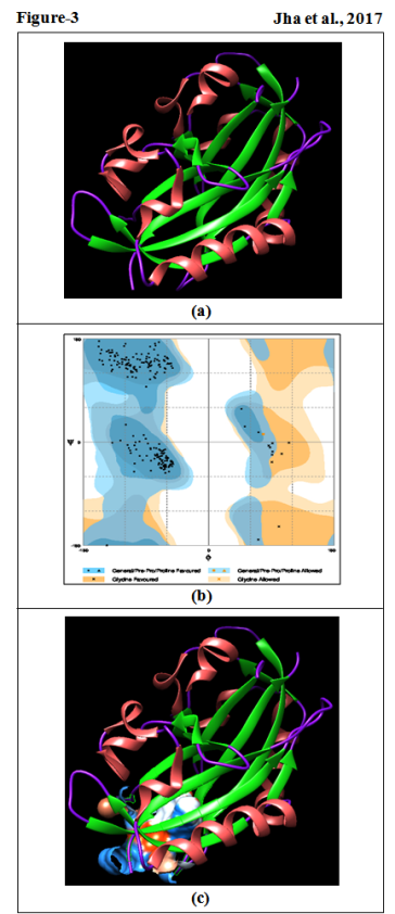 Fig. 3: (a) 3D-Structure, (b) Ramachandran Plot and (c) Active site of generated HIF-1α model