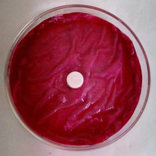 The wetting time of tablets was measured using a very simple procedure five circular tissue papers of 10 cm diameter were placed in a Petri dish with a 10 cm diameter. Ten ml of water containing a water-soluble dye (amaranth) was added to the petri dish. A tablet was carefully placed on the tissue paper. Time required for water to reach the upper surface of the tablet was noted as wetting time [12, 13].