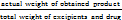 The dried microspheres were collected and weighed. The actual weight of obtained microspheres divided by the total amount of all material that was used for the preparation of the microspheres gives percentage yield and it can be calculated using the following formula [8].