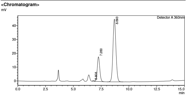 | retention time (min) | Area (mAU*sec) (mean±SD) |