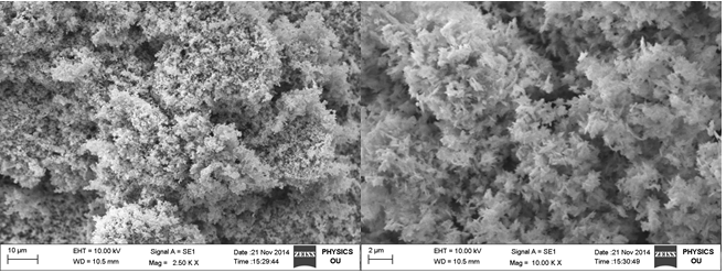 The structure of the compounds was investigated using X-ray diffraction (XRD-6100 diffractometer, Shimadzu) with Cu Kα radiation (λ= 1.54060 Å).Molecular analysis of the sample was performed by Fourier transform infrared (FT-IR) spectroscopy using IR Affinity-1s (Shimadzu) spectrometer, recorded in the wave number range of 4,000–400 cm‑1. UV-Vis spectroscopy was used to characterize the optical absorption properties of CuO. The absorption spectra of the sample were recorded in the wavelength range of200-800 nm using a JASCO V 670.Morphological study of the nanoparticles was carried out with scanning electron microscope (EVO 18 carlzeiss).