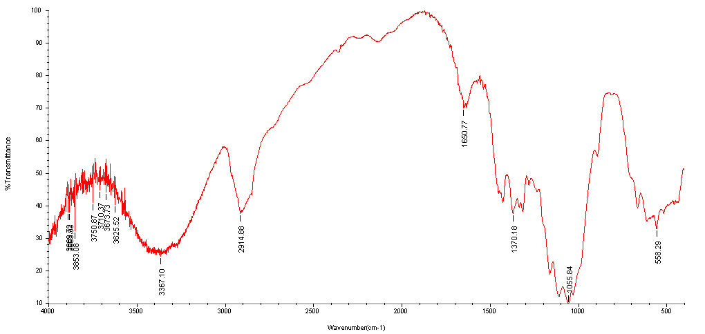 Fig. 9: FTIR spectrum of a physical mixture of F1 liquisolid system