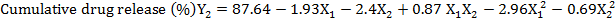 Different polynomial equations for different models were generated by using the multiple regression analysis in 32 factorial design with the interacting term and regression coefficient for evaluating the responses. The responses were analysed using quadratic equation 2,