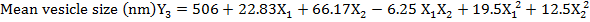Entrapment efficiency (Y1), cumulative drug release (Y2) and vesicle size (Y3) were analysed and mathematical model for each response is produced and expressed in the following equations.