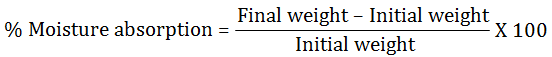 The films were weighed accurately and kept in a desiccator containing anhydrous calcium chloride. After three days the films were taken out and weighed. The moisture loss was calculated using the formula [19]: