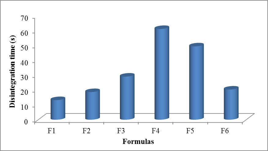 Fig. 7: In vitro disintegration time in seconds of formulas prepared with different types of plasticizer, (All the values were calculated as mean±standard deviation; n=3)