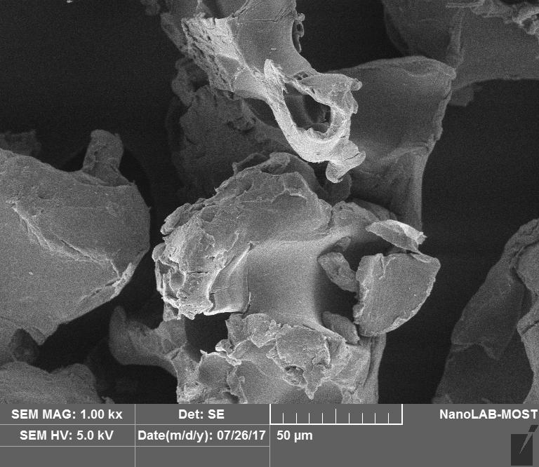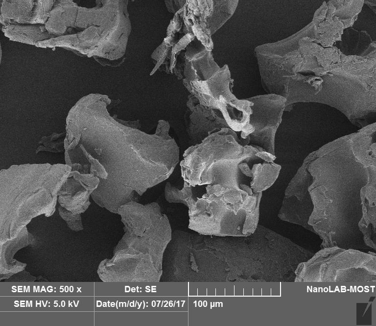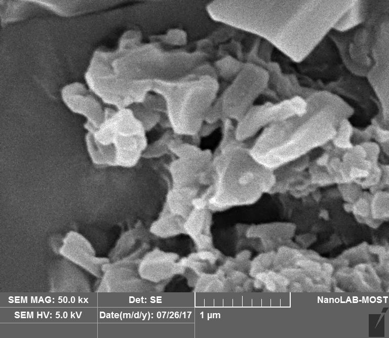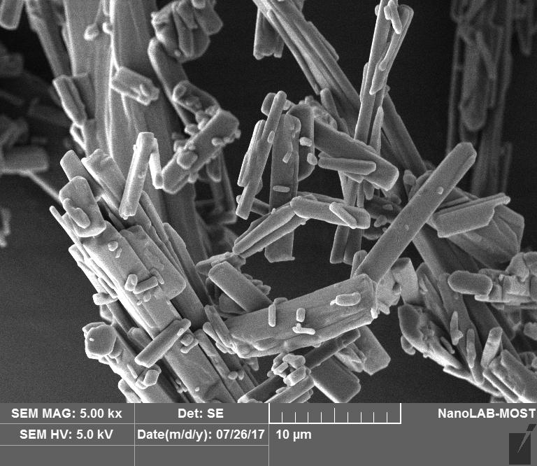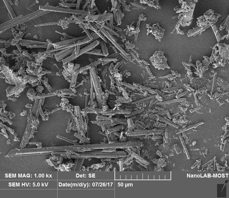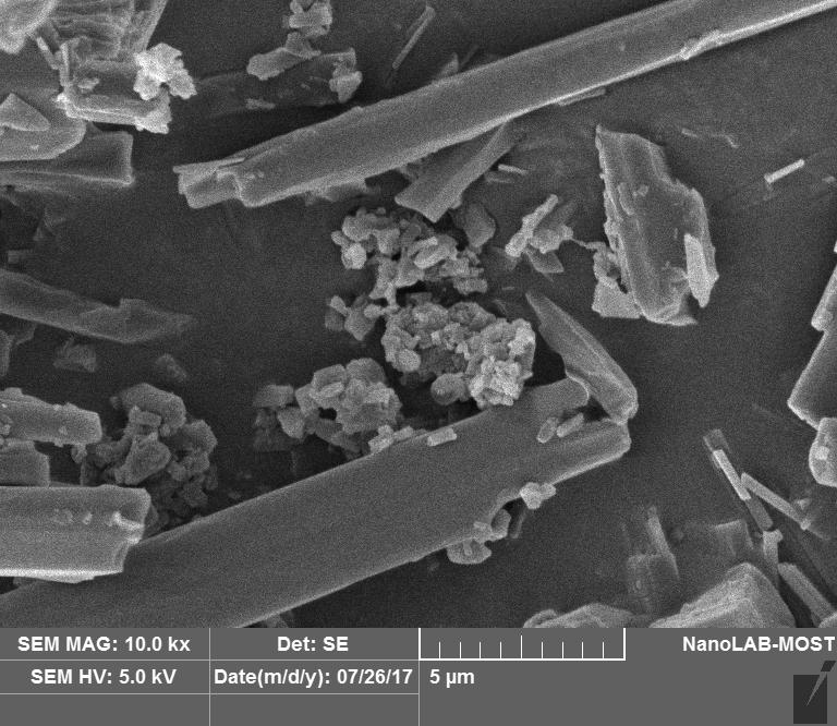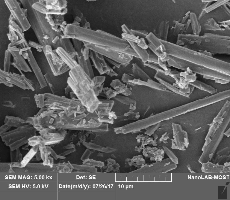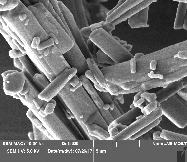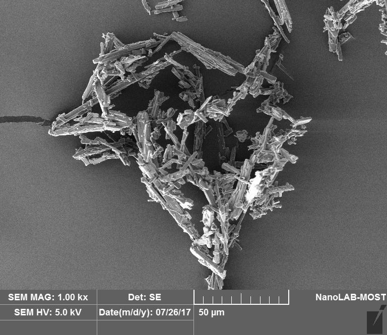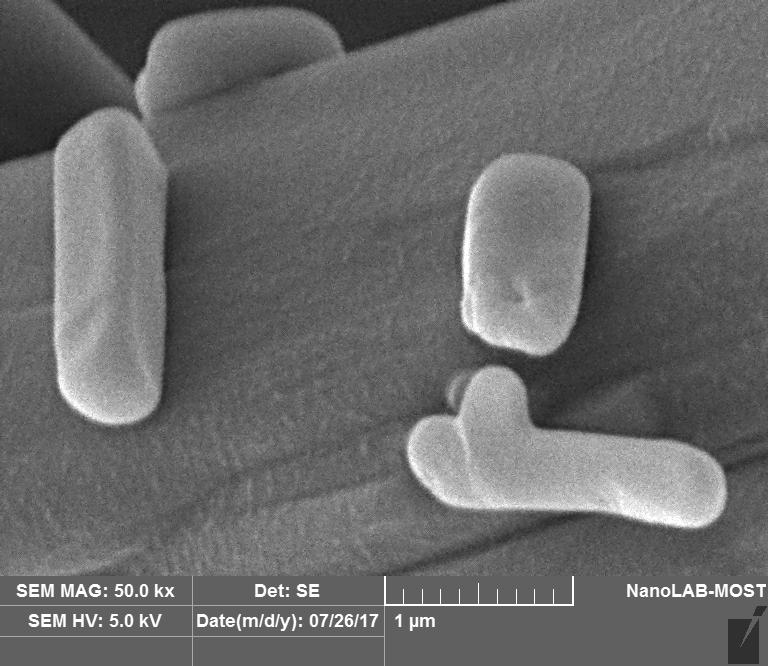 Scanning electron microscope of lyophilized powder at 1K, 5K, 10K and 50K of magnification revealed that the decreased the particle size with some of the crystalline needle structure of drug this problem may mean that by the addition more stabilizer and more cryoprotectant.