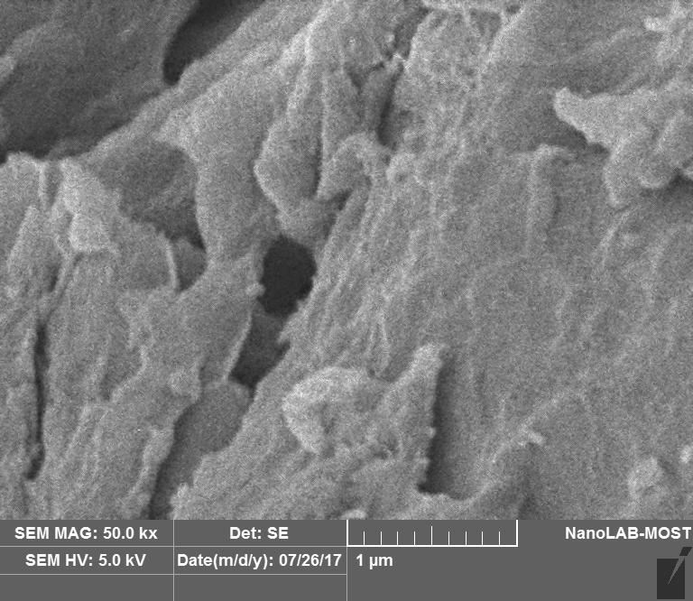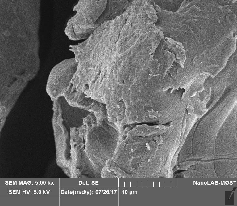 Scanning electron microscope of pure lafutidine, PVP K-90 and lyophilized powder are presented in fig. (13, 14, and 15) at 1K, 5K, 10K, 50K and 500x (this only for PVP K-90) magnification. The scanning electron microscope study for pure lafutidine powder showed large particles with crystalline needle shape with the smooth surface, while scanning electron microscope of PVP K-90 elucidated the irregular shape with the rough surface of PVP K-90 particle because it was the amorphous polymer [38].