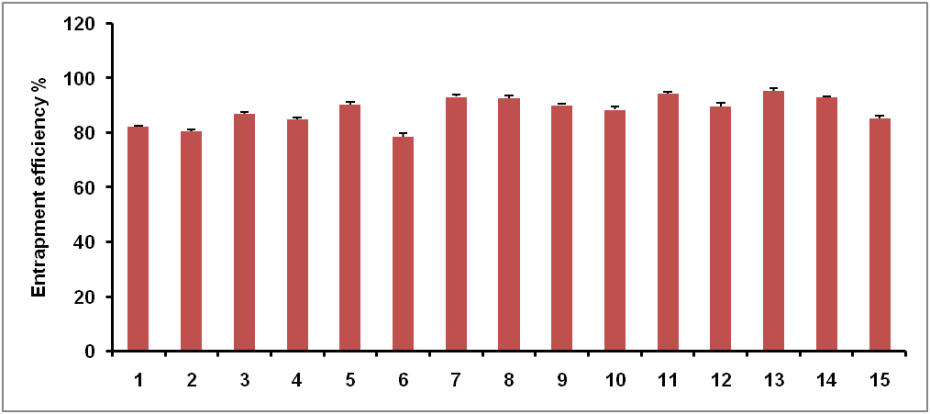 Fig. 1: Entrapment efficiency of itraconazole proniosomes, data’s are expressed as mean±SD (n=3)