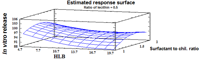 The rate of release was increased with increasing (X2). This could be due to the emulsification effect of the surfactant after the hydration of the noisome by the dissolution medium [20]. The release rate of itraconazole niosomes was increased till ratio of lecithin become 0.5 then decreased; this was because of factors that stabilize the vesicle membrane and increase the entrapment efficiency of a hydrophobic drug as itraconazole will slow down the release profile [15].