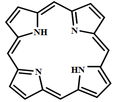 Porphyrins are the building blocks of porphysomes. They are heterocyclic organic compounds which are made up of four pyrrole subunits which are interconnected by methane bridges at their α carbon as depicted in fig. 2 [17]. The porphyrin is having 26 electrons in its conjugated system.
