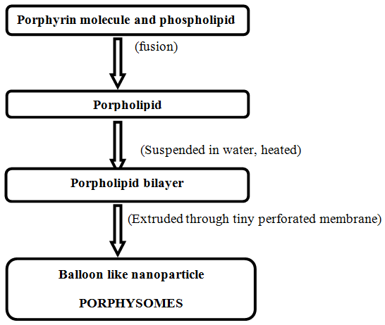 Then these bilayers can be forced out through a tiny perforated membrane to form balloon-like nanoparaticle with a diameter of 100 nm, which are termed as porphysomes, as depicted fig. 4 [27].