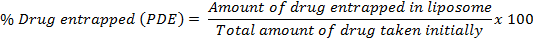 Table 1: Drug entrapment and % entrapment efficiency of liposome formulations
