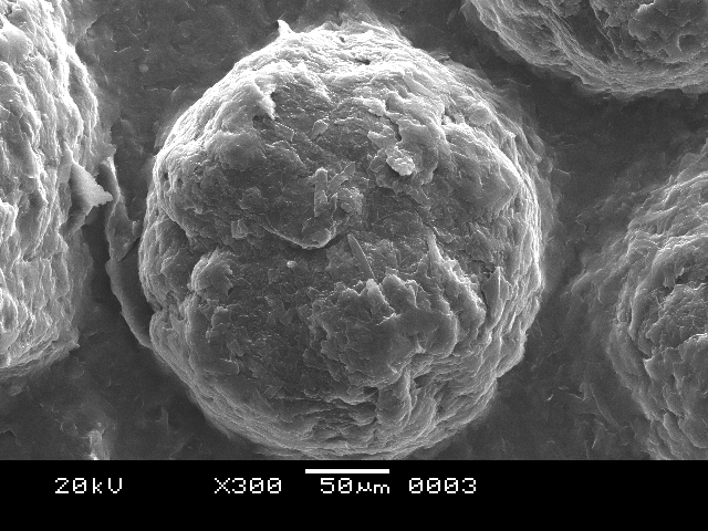 Particle sizes were determined from the SEM photographs. Both F1 and F6, the two extreme formulations, were observed under SEM and the size of the liposomal vesicles was measured at different locations on photographs.
