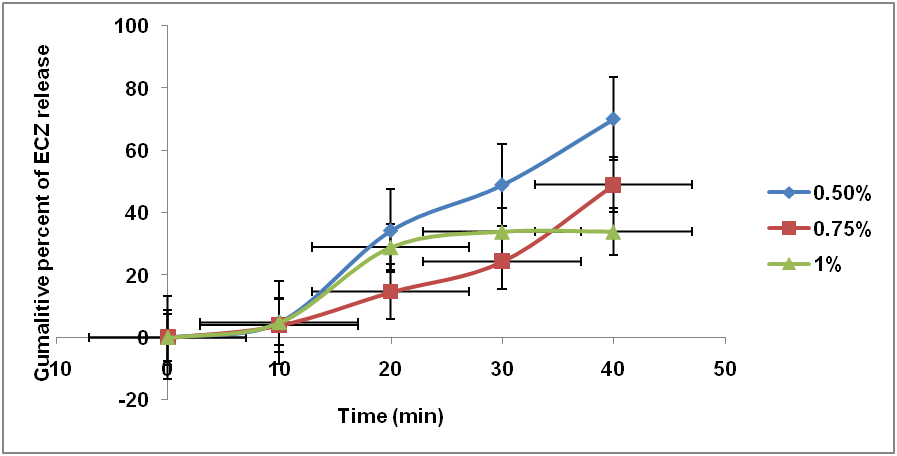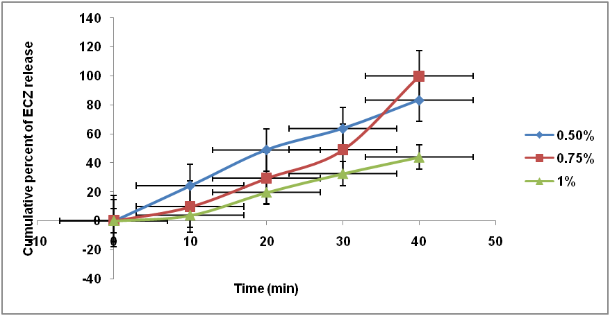 Fig. 3: The release of ECZ from ophthalmic gels at 1.76