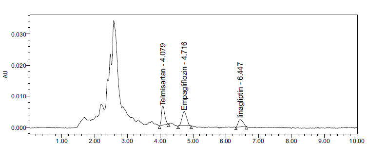 Fig. 3: Chromatogram of human plasma spiked with empagliflozin, linagliptin and telmisartan