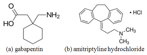 Fig. 1: Chemical structure of (a) gabapentin and (b) amitriptyline hydrochloride [1, 2]