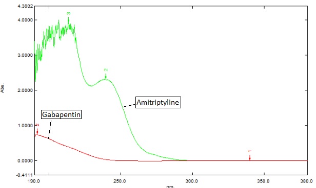 Conclusion: The developed method is novel, simple, precise, rapid, accurate and reproducible for simultaneous estimation of gabapentin and amitriptyline hydrochloride tablet dosage form. Hence the proposed method may find practical applications as a quality-control tool in the simultaneous analysis of the two drugs in combined dosage forms in quality-control laboratories.