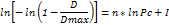 Where D denotes the hardness or crushing strength of the tablet, Dmax the maximum hardness reached, Pc the compaction pressure, n the slope of the curve and I the intersection of the curve.