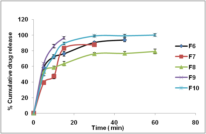 Fig. 3: In vitro drug dissolution for formulations F6-F10